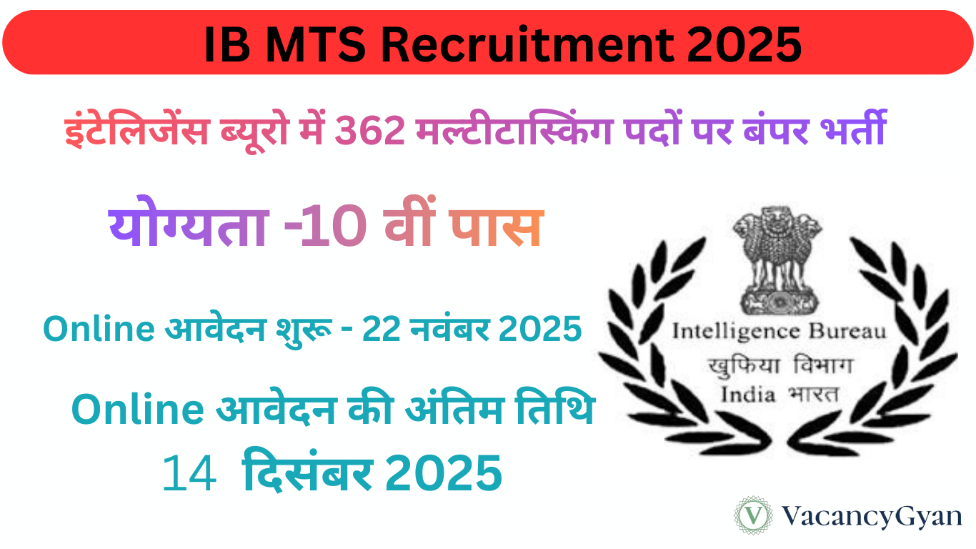 IB MTS Recruitment 2025: इंटेलिजेंस ब्यूरो में 362 मल्टीटास्किंग पदों पर बंपर भर्ती, 10th पास करें आवेदन